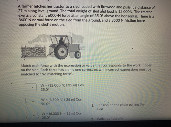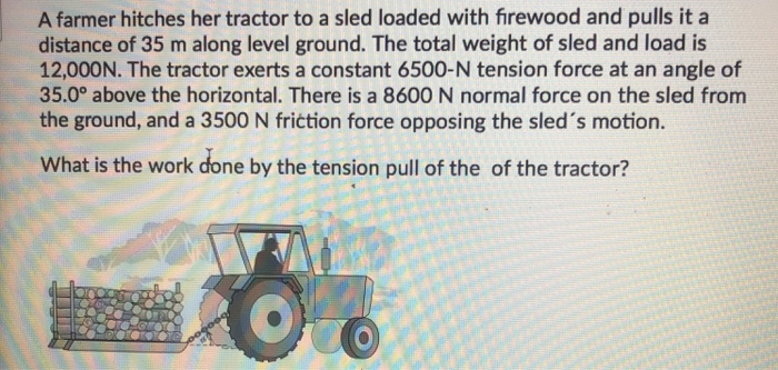 Solved A Farmer Hitches Her Tractor To A Sled Loaded With Chegg Com