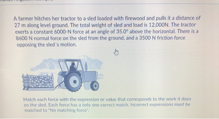 Work Done By Several Forces A Farmer Hitches Her Tractor To A Sled Loaded With Firewood And Pulls It A Distance Of 20 M Along Level Ground Fig 6 7a The Total Weight